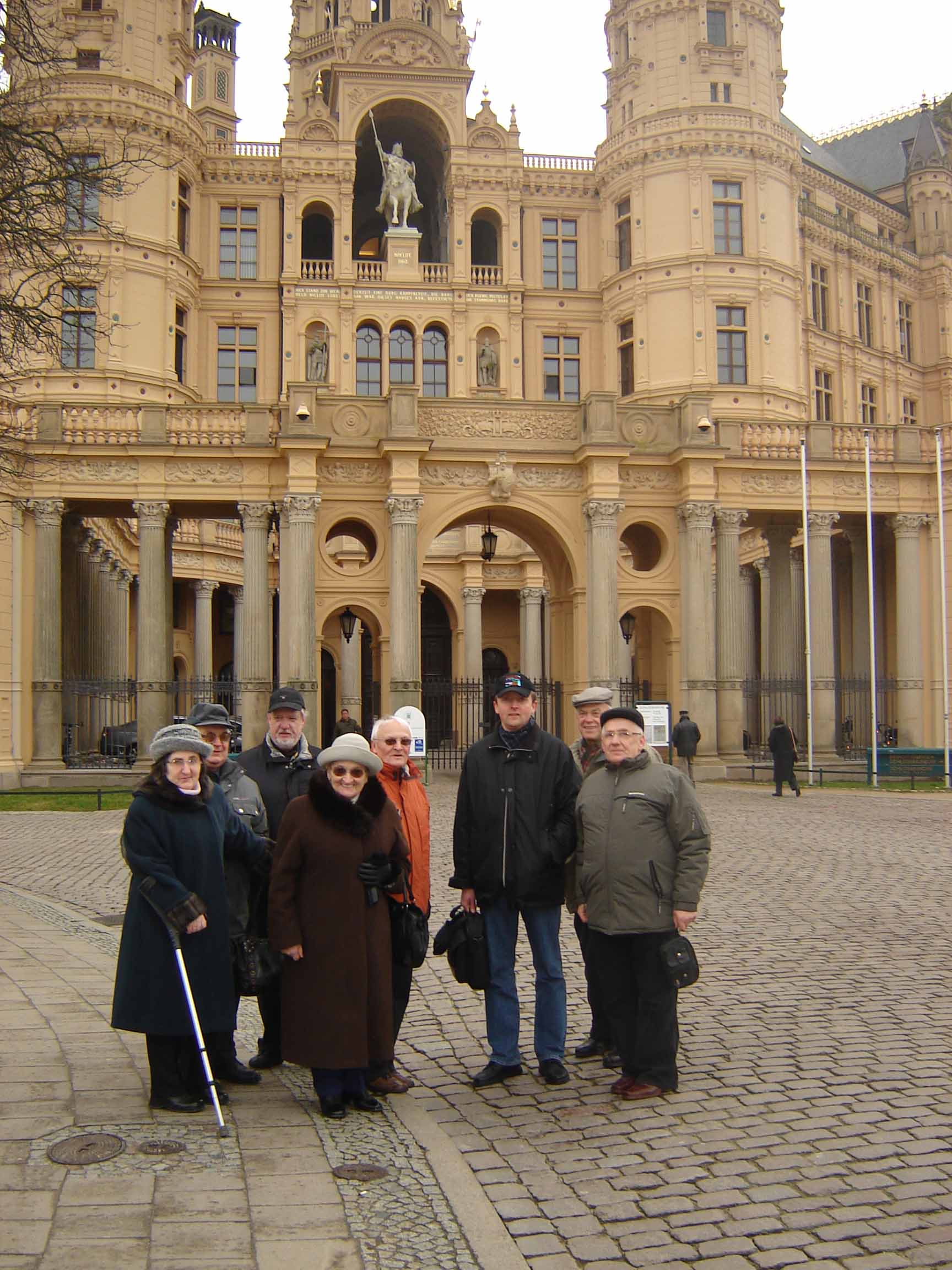 Nachdem offizielle Vertreter des HKA Stargard unsere Weihnachtsfeier am 14.12.2007 besucht und uns den Gutschein für einen neuen Tischkopierer überreicht hatten, war es nur eine Frage der Zeit, wann die Abordnung der deutschen Minderheit Stargard nach Schwerin kommt, um das Gerät abzuholen. Der Winter 2008 verwöhnte uns bisher zwar kaum mit dem Schnee, dafür aber begünstigte er mit milden Temperaturen unsere Reisepläne. Die Umfrage unter unseren Mitgliedern führte zu mehreren Anmeldungen, so dass sich zwei Pkws am Mittwoch, dem 23.01.2008 auf die lange Fahrt nach Schwerin machten. Neben dem Vorsitzenden Herrn Daniel Buda nebst Frau und seinem Stellvertreter Herrn Alfons Tusk nahmen die Schatzmeisterin Halina Sobczak, der Sekretär Piotr Nycz sowie zwei weitere Mitglieder der Ortsgruppe an diesem Ausflug teil. Die Reisekosten haben alle Teilnehmer solidarisch unter sich geteilt.